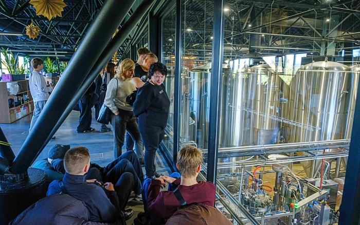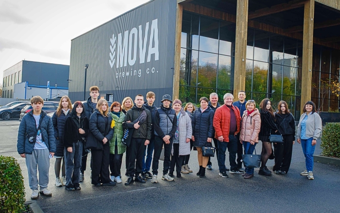 Під час екскурсії на пивоварню «MOVA» школярі ознайомилися з процесами підготовки води та пивоваріння, дізналися про технологічні етапи виробництва напою та важливість контролю якості на кожному кроці.
