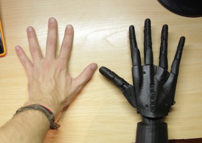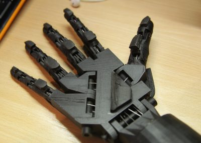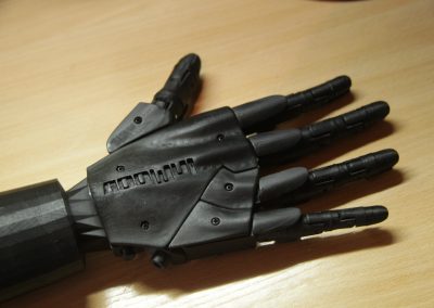 Робо-механічна рука має достатню міцність, щоб тримати інструменти та об’єкти. Розробник ставив за мету забезпечити гнучкість та функціональність робочої руки, зовнішній дизайн та презентаційні властивості. Багато уваги, зокрема, приділено метрологічним характеристикам маніпулятора, його основним механічним рухомим частинам, точності позицій датчиків та кутів поворотів сервомоторів. Важливим етапом є підготовка до друку та сам 3D-друк (точність друку та якість пластику).