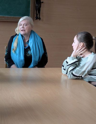 Нашою гостею була Ольга Волошина – режисерка, акторка, дикторка, представниця відомого Дніпровського академічного українського музично‑драматичного театру імені Тараса Шевченка. Вона поділилась власним досвідом: як започатковувались перші постановки творів репресованих авторів у Дніпрі, зокрема відновлена на сцені п’єса Володимир Винниченко «Брехня». Ці вистави несли унікальне поєднання мистецтва, історичної пам’яті та соціальної сміливості.