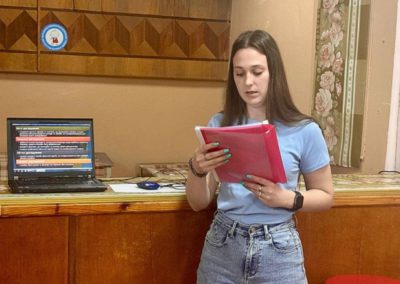 Глибоким аналізом і демонстрацією сучасних методів реабілітації відзначилася робота Кіяшко Наталії «Особливості фізичної реабілітації хворих на сколіоз різного ступеня» (науковий керівник – к. фіз. вих., доцент Івченко Оксана Миколаївна). У своїй доповіді студентка представила ефективні схеми корекції постави із застосуванням кінезіотерапії та рекомендаціями фахівців-практиків.