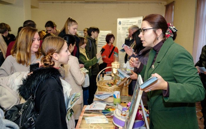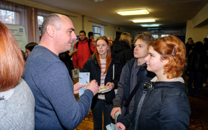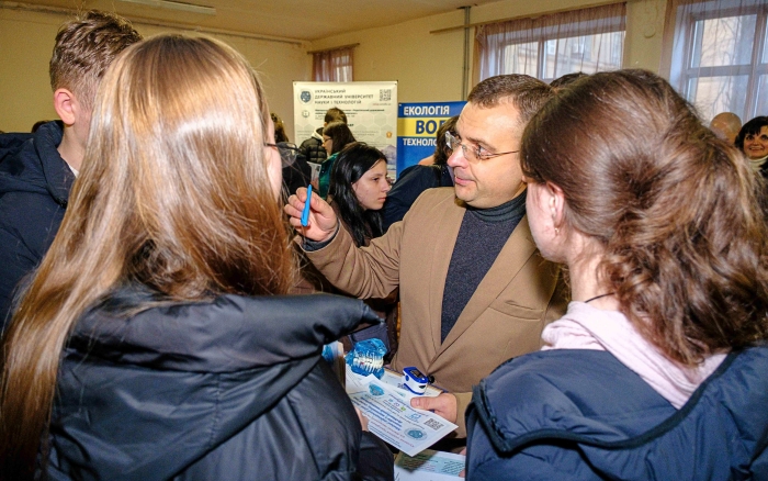 Перед початком конкурсної програми хол Палацу культури УДУНТ перетворився на живий майданчик науки й творчості. Серед експозицій навчально-наукових інститутів університету наша команда представила напрями підготовки, лабораторні можливості й приклади студентських робіт. Майбутні абітурієнти активно цікавилися спеціальностями, умовами вступу та тим, чим живе Хімтех сьогодні. Атмосфера була по-справжньому динамічною – багато спілкування, демонстрацій та щирих запитань від школярів і їхніх батьків.
