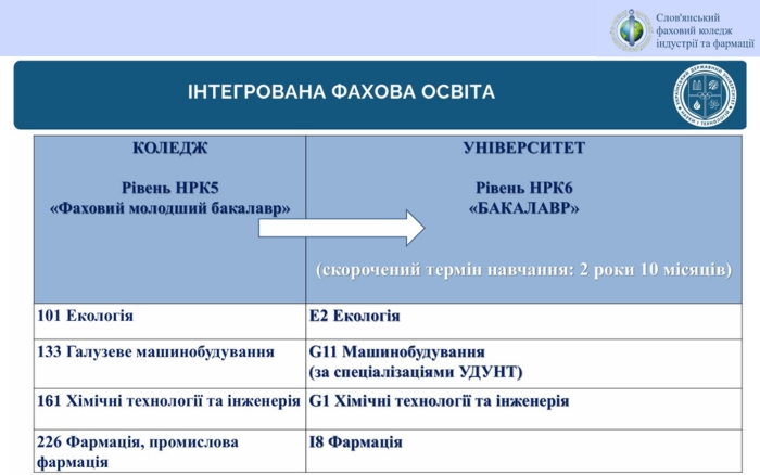 5 листопада 2025 року представники Українського державного університету науки і технологій провели профорієнтаційний вебінар для здобувачів передвищої освіти випускного курсу Слов’янського фахового коледжу індустрії і фармації. Заклад має понад 125-річну історію та готує фахівців за затребуваними спеціальностями: