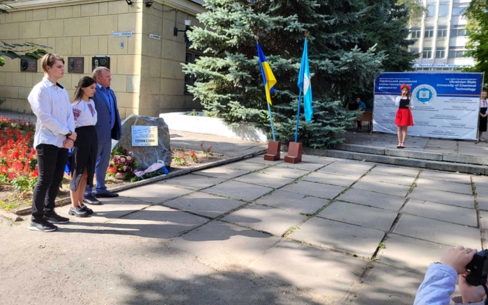На Фонтанній площі УДХТУ 2 жовтня 2023 року відбулося відкриття меморіального знаку Захисникам нашого університету, що віддали свої життя за свободу і Незалежність України
