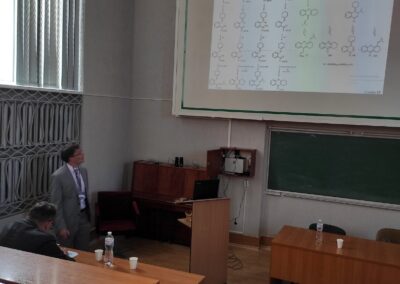 Дніпро і ДВНЗ УДХТУ на симпозіумі представляли доценти кафедри фармації та технології органічних речовин, д.х.н. Фарат Олег Костянтинович та к.х.н. Варениченко Світлана Анатоліївна. На особисте запрошення оргкомітету симпозіуму Фарат О.К. виступив з пленарною доповіддю, присвяченою безпрецедентним перегрупуванням гемінальних оксазагетероциклів. Також на другий день його було призначено головою секції.