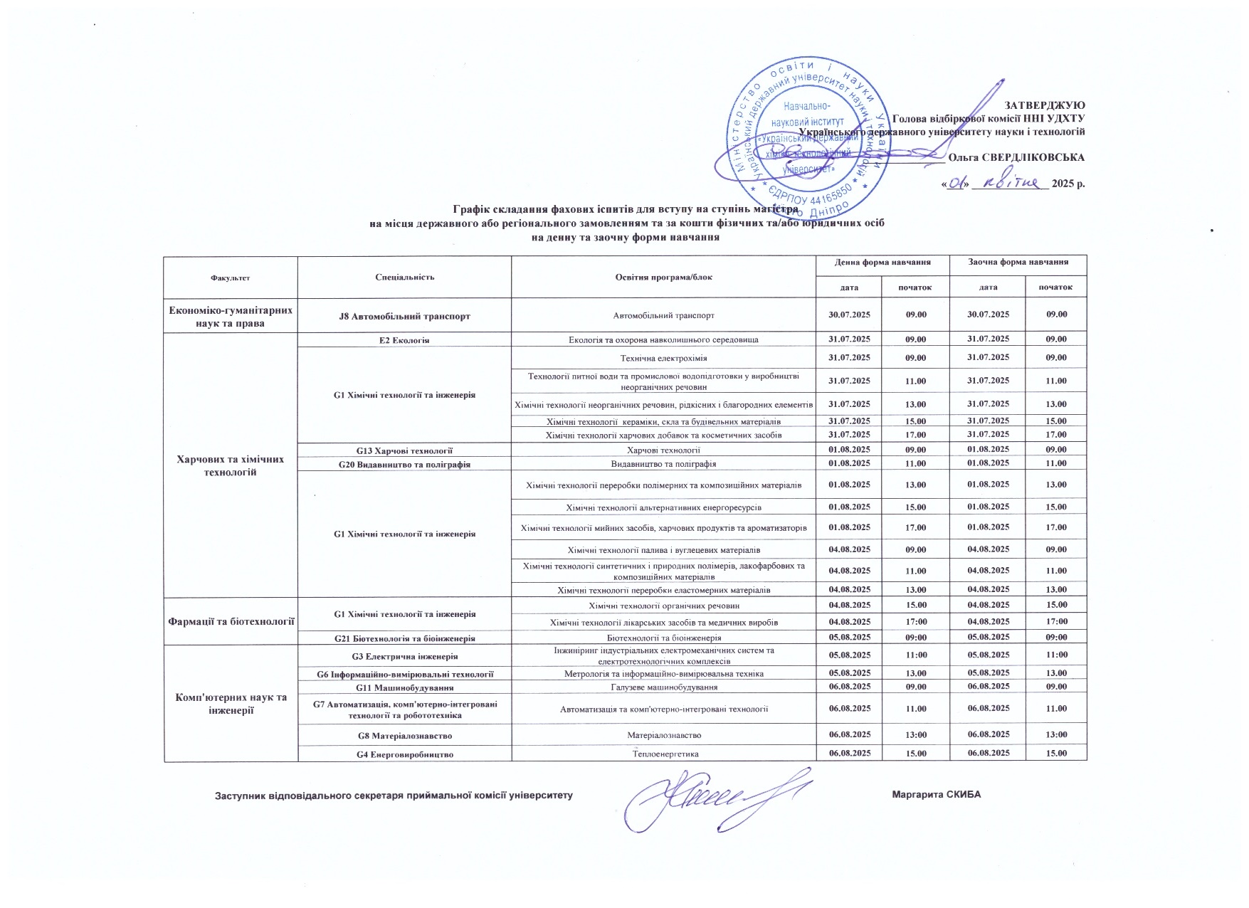 Графіки складання іспитів на спеціальність G12 Авіаційна та ракетно-космічна техніка