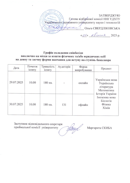 Графік проведення співбесіди для вступників, які мають на це право