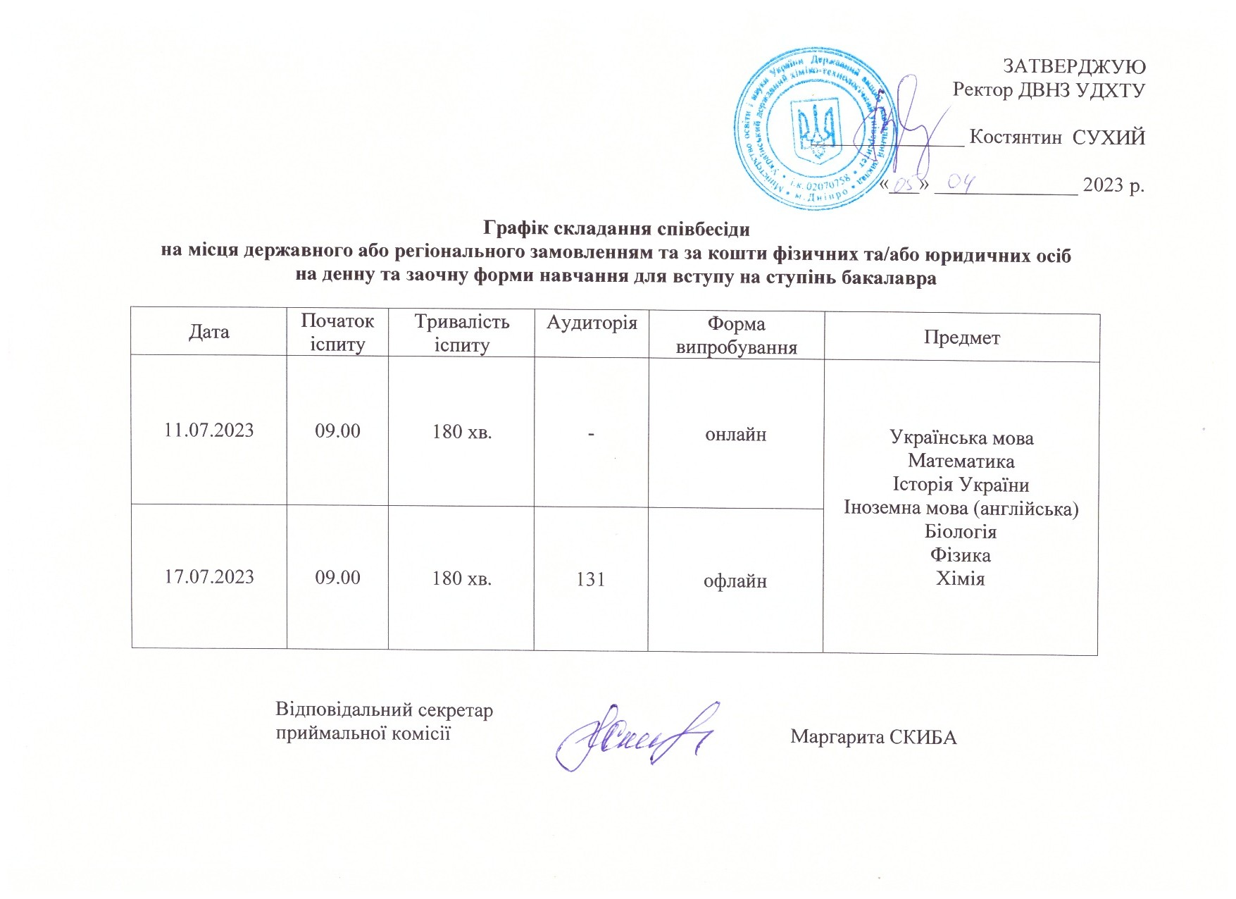 | зарахування вступників за державним або регіональним замовленням та за кошти фізичних або юридичних осіб (за заявою з пріоритетністю) | не пізніше 11 серпня |