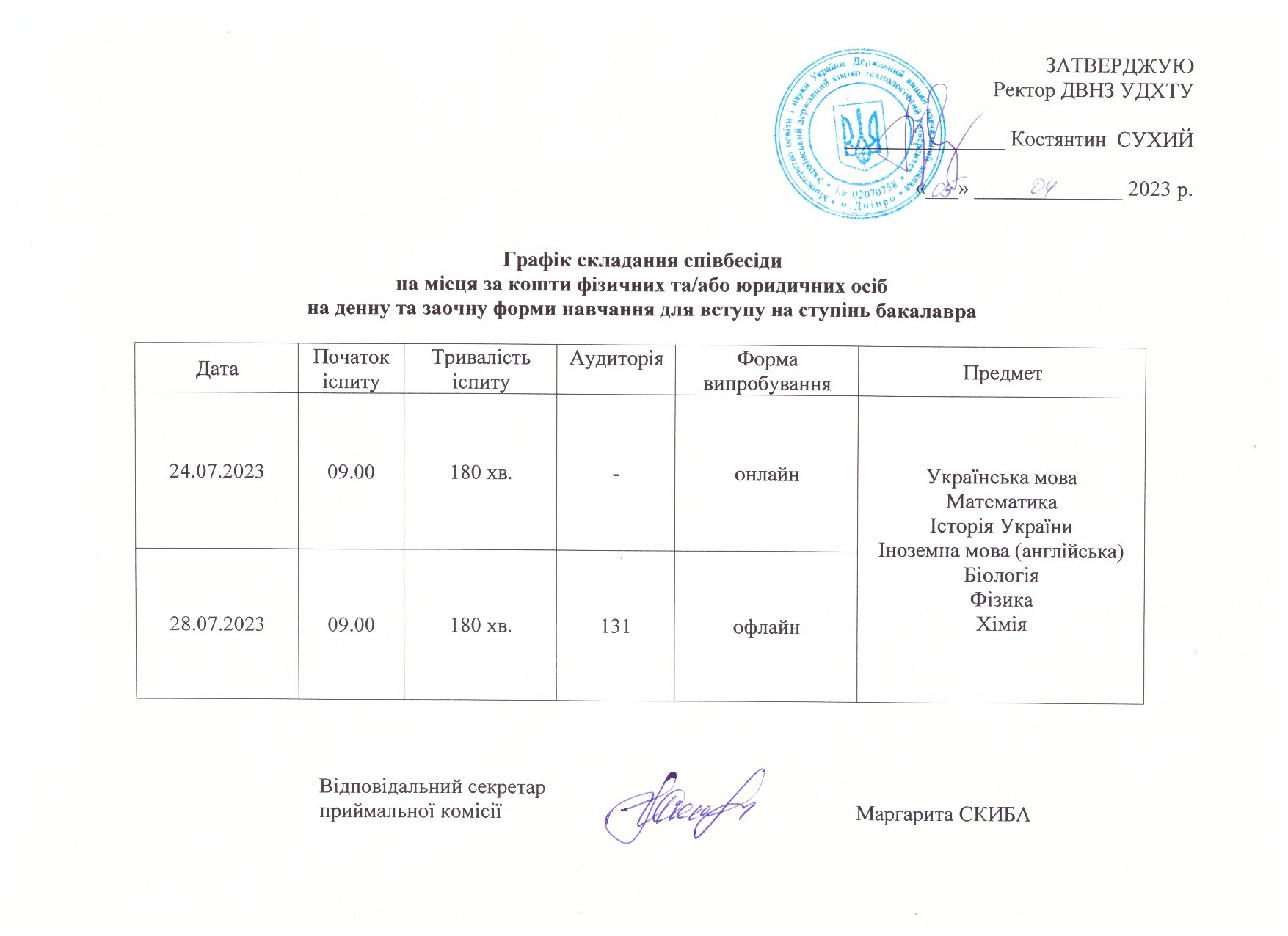 | зарахування вступників за кошти фізичних та/або юридичних осіб | не пізніше 30 серпня |