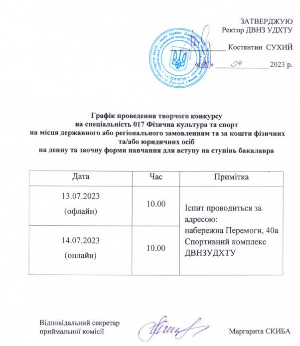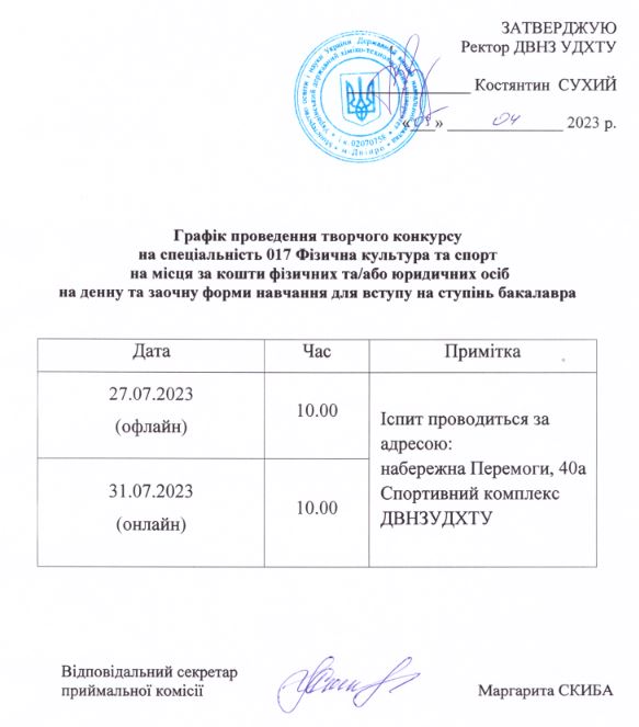 Графік складання творчого конкурсу (017 Фізична культура і спорт)