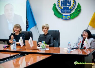 В залі проведення заходу та онлайн від Національного транспортного університету також були присутні студенти спеціальностей «Екологія», «Технології захисту навколишнього середовище» та «Менеджмент природоохоронної діяльності», представники керівництва ЗВО, декани, завідувачі та співробітники випускових кафедр. Студенти та освітяни обговорили з практиками з боку влади, громад, бізнесу такі теми: