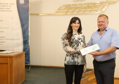 - Марії Олександрівні Мироняк, кандидату хімічних наук, кафедра аналітичної хімії і хімічної технології харчових добавок та косметичних засобів.