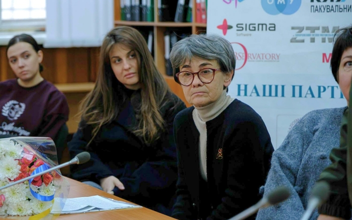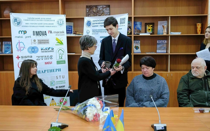 Особливо зворушливою стала розповідь Наталії Іванівни Жиленко – мами загиблого випускника економічного факультету 2018 року Станіслава Жиленка. Вона поділилася особистими спогадами про сина, його шлях на фронті та силу духу, з якою він, навіть після поранення, знову повернувся боронити Україну. Її слова про очікування звісток із передової, тривогу й надію стали щемливим нагадуванням про людську ціну війни. Під час заходу Наталія Іванівна також передала до Музею історії УДХТУ особисті речі Станіслава.
