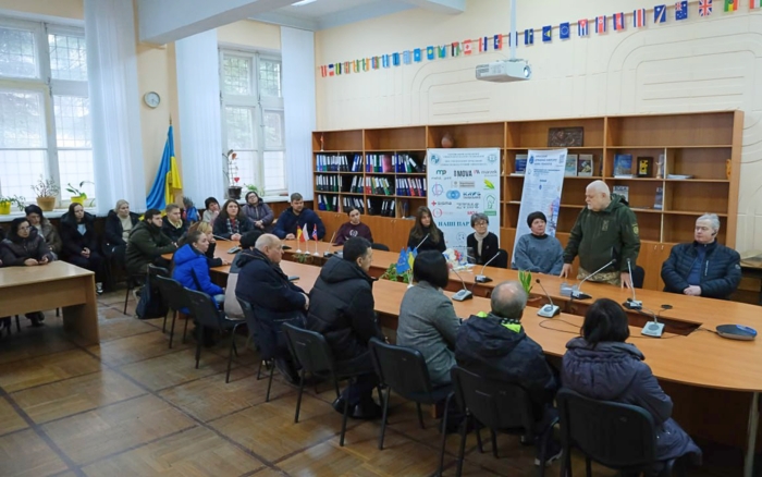 Почесним гостем зустрічі став Олександр Железняков – герой-чорнобилець, який пережив наслідки аварії на Чорнобильській АЕС, а згодом пройшов і фронтові випробування. Восени 2014 року він добровільно вступив до окремого мотопіхотного батальйону «Дніпро-2» та став на захист України. Із початком повномасштабної війни у лютому 2022 року Олександр знову повернувся на фронт. Під час зустрічі він поділився спогадами про перші дні вторгнення, різкі зміни в житті військових і цивільних, а також про щоденну боротьбу, сповнену випробувань, рішучості та мужності.