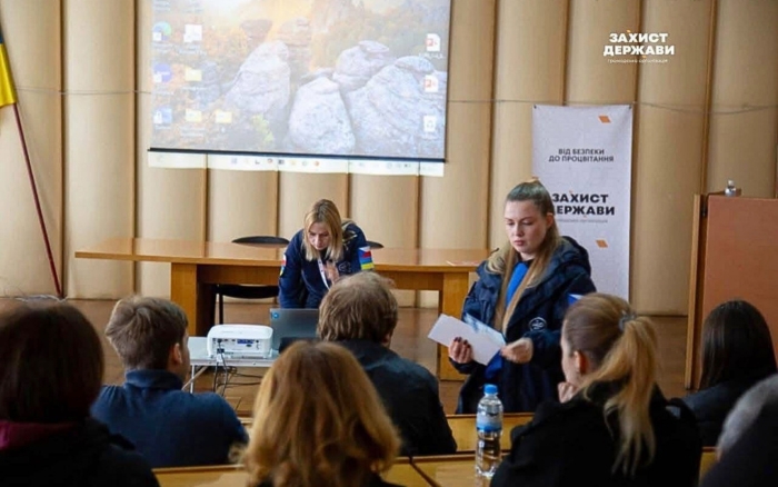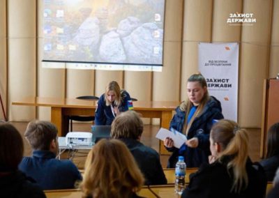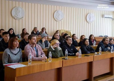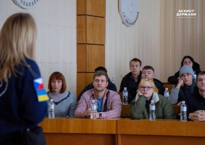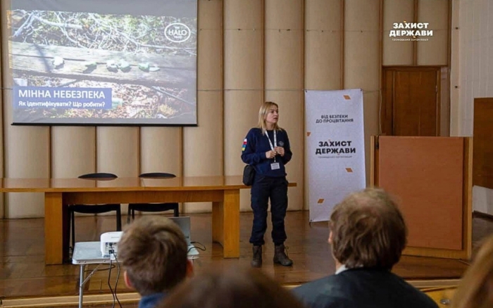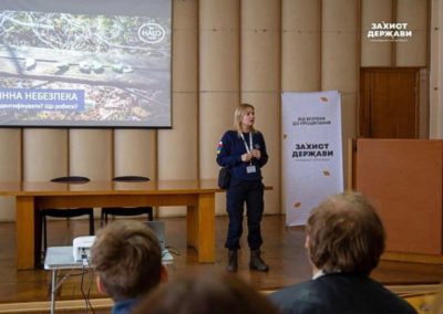 Заняття відбулося в межах договору про співпрацю кафедри з осередком громадської організації «Захист держави» за участі фахівців міжнародної гуманітарної організації The HALO Trust Ukraine, яка спеціалізується на розмінуванні територій та навчанні населення правилам безпечної поведінки.