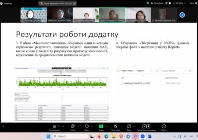 На кафедрі інформаційних систем ННІ УДХТУ УДУНТ 8 та 9 січня 2025 року успішно відбулися захисти кваліфікаційних робіт магістрів зі спеціальності «Комп’ютерні науки». Старту онлайн захистів передувала велика і ретельна підготовча робота: консультації із керівниками робіт, передзахисти дипломних робіт, перевірка робіт на дотримання норм академічної доброчесності, підготовка документації щодо роботи екзаменаційної комісії. Завдяки цьому публічні онлайн захисти кваліфікаційних робіт відбулися на належному рівні.