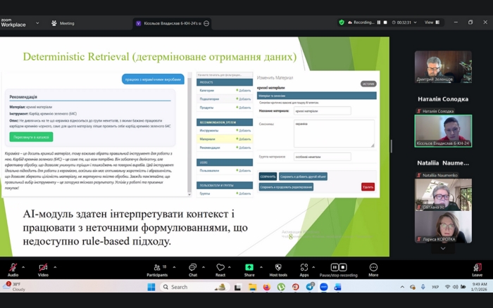 Результати комплексної дипломної роботи здобувачів Дмитра КЛЕВЖИЦЯ та Данила ШВИДЬКА і дипломної роботи Влада СЕМЕНОВА були представлені в І турі Всеукраїнського конкурсу студентських наукових робіт зі штучного інтелекту.