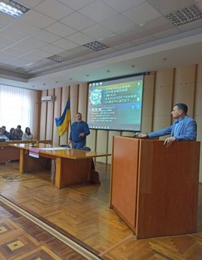 Зустріч організована керівництвом дирекції ННІ УДХТУ. Представив гостя студентам Ярослав КОЗЛОВ, заступник директора ННІ УДХТУ.